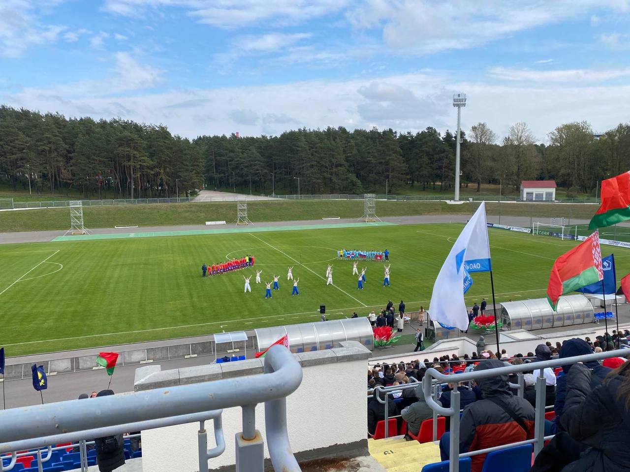 Посетили футбольный матч между командами спортсменов в рамках празднования Дней города Перми в городе Минске на стадионе «Трактор»
