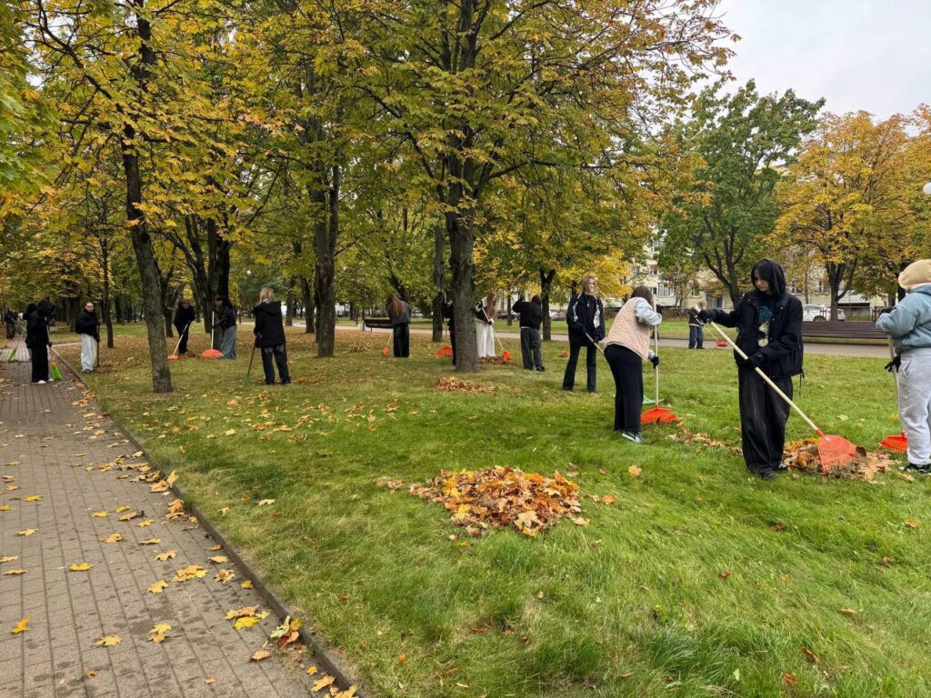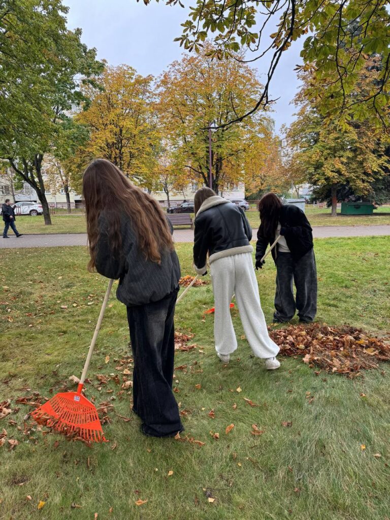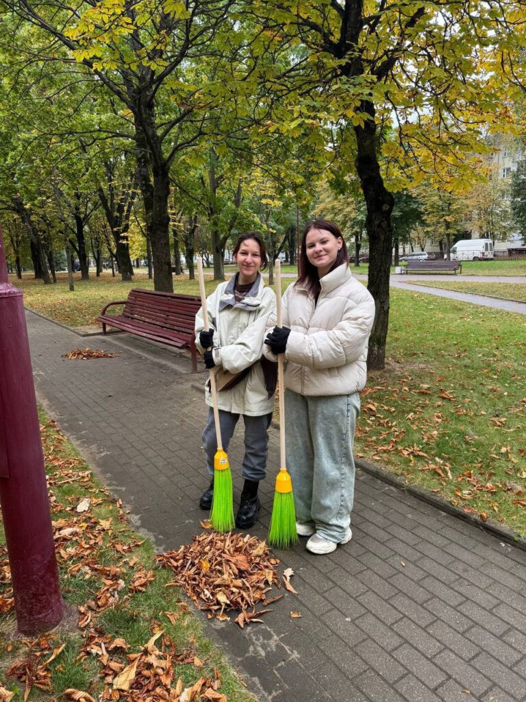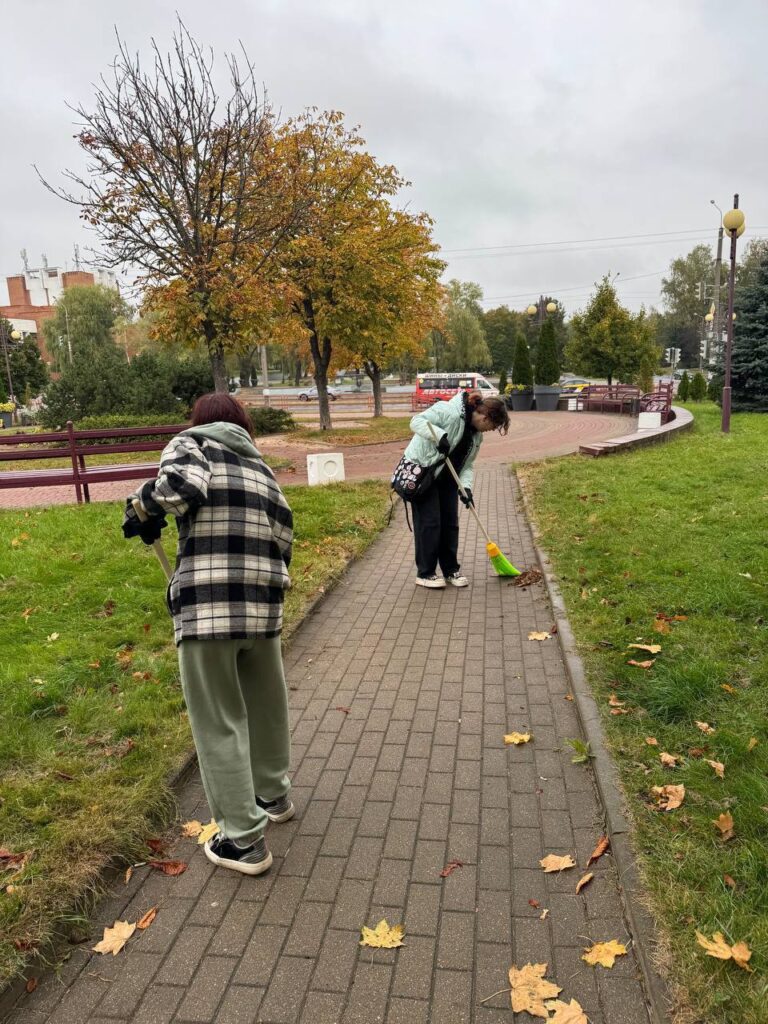 Приняли участие в субботнике 4 октября, 202514 октября, 2025 redsite Новость дня 04.10.2025 преподаватель совместно с учащимися УО «Минский государственный колледж технологии и дизайна легкой промышленности» приняли участие в субботнике на территории парка 60-летия Великого Октября.