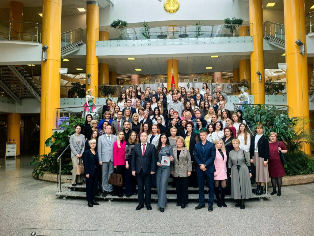 17 октября 2025 года в Национальной библиотеке Республики Беларусь в рамках акции “Педагоги – “Белой Руси!” состоялась торжественная церемония приема в ряды РОО “Белая Русь” новых членов из числа работников учреждений образования Фрунзенского района, в которой приняли участие и сотрудники УО “Минский государственный колледж технологии и дизайна легкой промышленности”.
