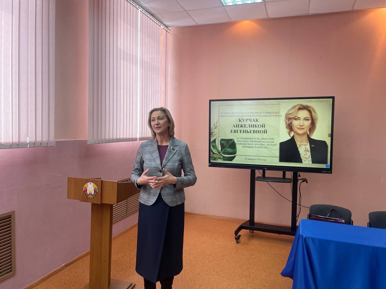 В УО «Минский государственный колледж технологии и дизайна легкой промышленности» прошла встреча с Депутатом Палаты представителей Национального собрания Республики Беларусь 🇧🇾 Курчак Анжеликой Евгеньевной.