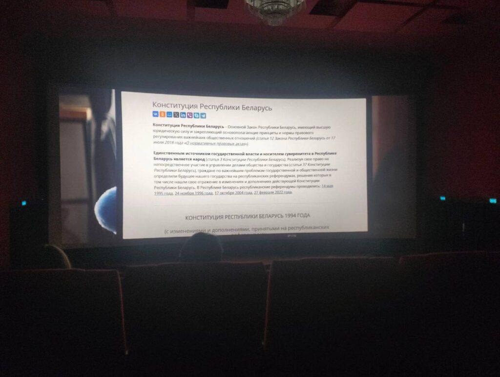 Преподаватель совместно с учащимися УО «Минский государственный колледж технологии и дизайна легкой промышленности» посетили кинотеатр «Победа» на просмотре смешанного фильма «Конституция Республики Беларусь». «Конституция Республики Беларусь» – документальный фильм в смешанной форме, сочетающий в себе элементы игрового и неигрового кино.