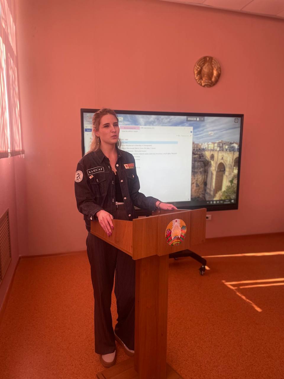 Второй секретарь Фрунзенского районного комитета ОО «БРСМ» Диана Молчан ответила на волнующие учащихся вопросы по функционированию студенческих отрядов и их профилях. 🧑‍🔧