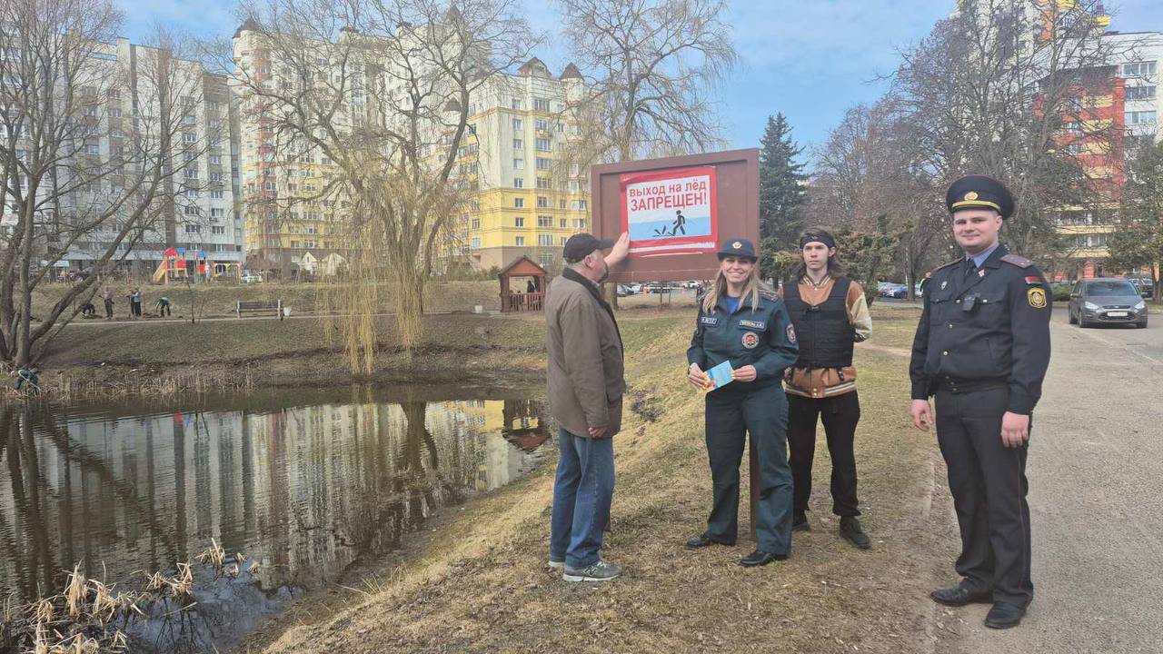 С целью предупреждения опасных ситуаций, связанных с таянием льда на водоемах, бойцы МООП УО «Минский государственный колледж технологии и дизайна легкой промышленности» совместно с сотрудниками ОСВОД, МЧС, РОВД и представителями БРСМ провели профилактический рейд Сквера Ефросиньи Полоцкой.