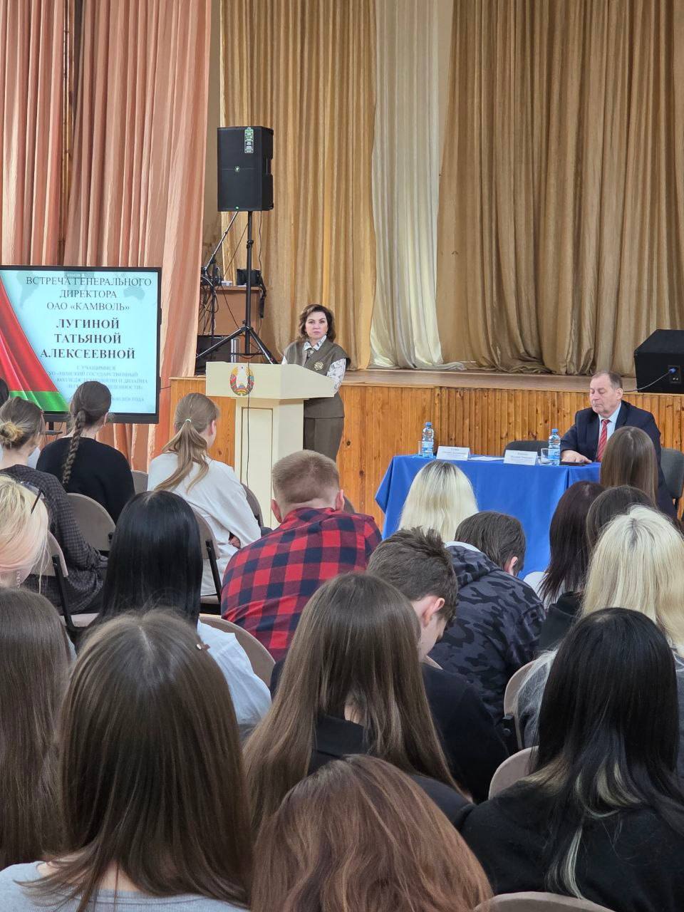 Генеральный директор ОАО «КАМВОЛЬ» Татьяна Алексеевна Лугина встретилась с учащимися учреждения образования «Минский государственный колледж технологии и дизайна легкой промышленности». Ребятам презентовали производство как идеальное место для первого опыта работы, обсудили карьерные траектории и возможности стабильного трудоустройства.